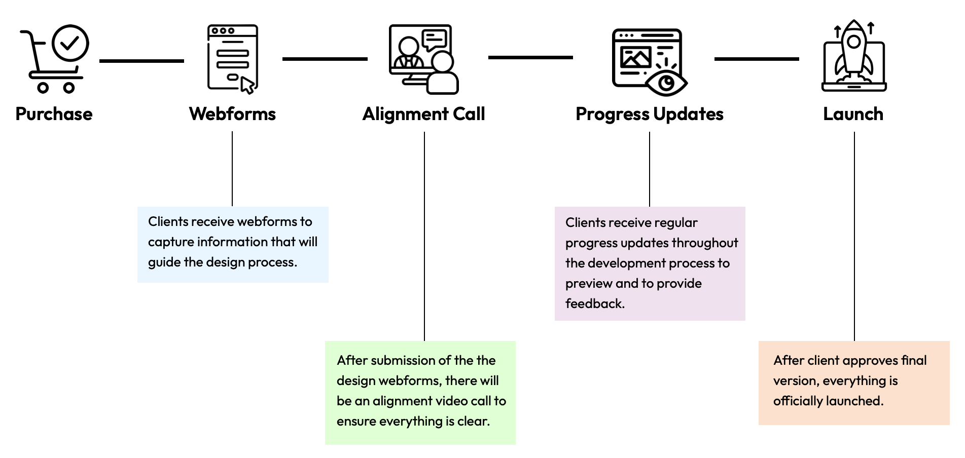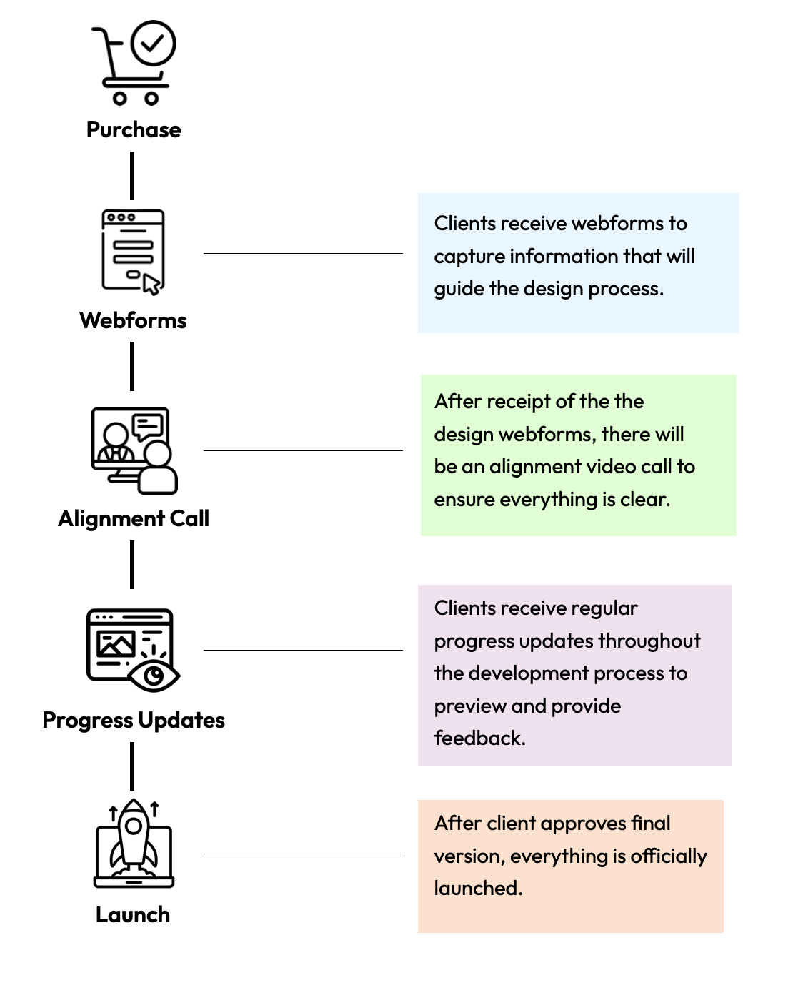 We have streamlined the design process to be smooth and collaborative. Upon purchase, clients receive easy-to-complete webforms to capture the information needed to begin the design process.